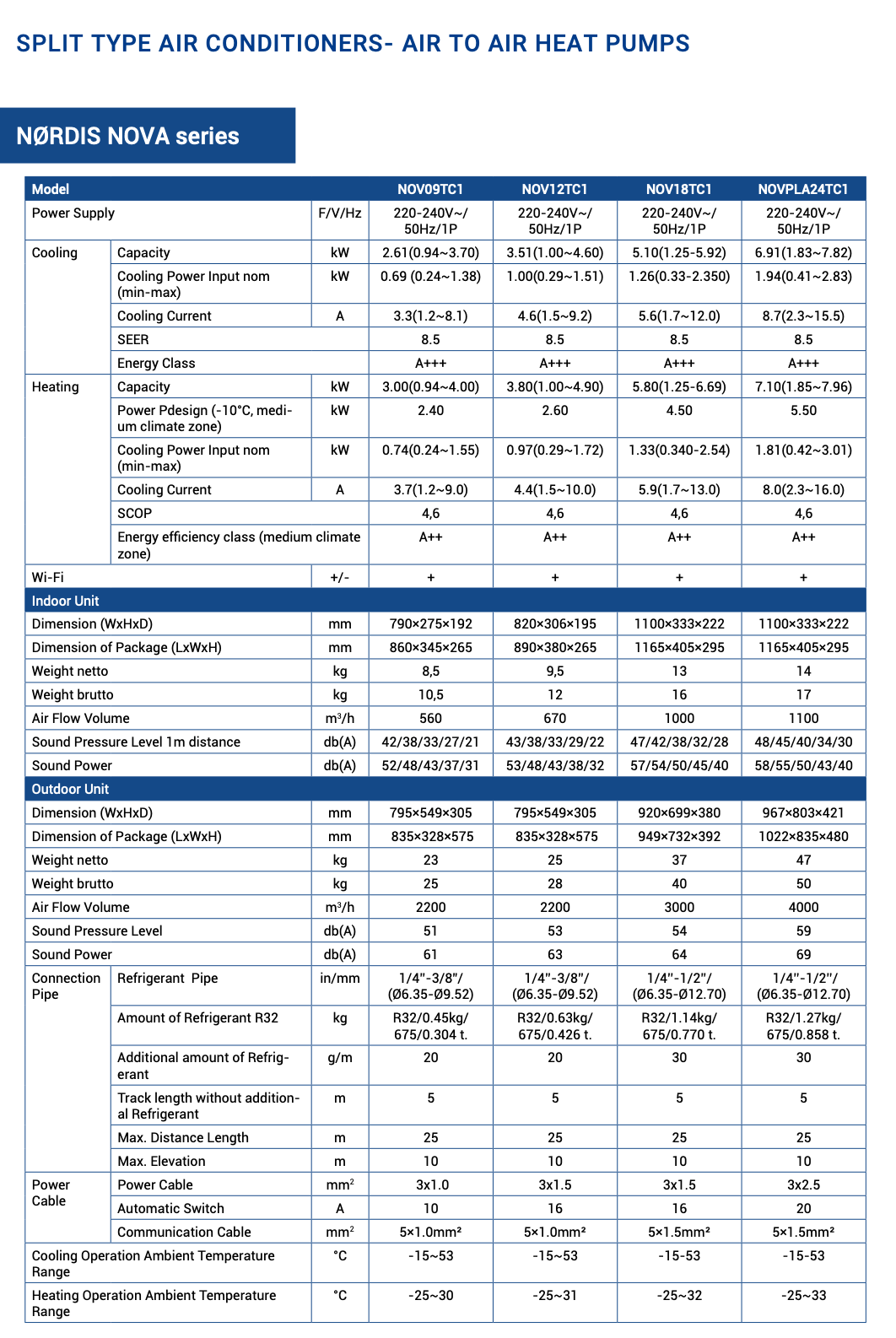 NØRDIS NOVA este cea mai recentă serie de aparate de aer condiționat NØRDIS care combină componente de înaltă calitate și tehnologie de ultimă oră. Aparatele de aer condiționat cu invertor NOVA de tip “Split” sunt concepute pentru răcirea și încălzirea clădirilor rezidențiale și a locuințelor private, dar pot fi instalate și în birouri. Unitățile sunt concepute pentru a controla microclimatul camerelor atât în modul de răcire, cât și în cel de încălzire. Configurația inovatoare a echipamentelor a crescut puterea de răcire și încălzire a aparatelor de aer condiționat din seria NOVA, asigurând un confort maxim în orice cameră. Aparatele de aer condiționat din seria NOVA sunt mai eficiente decât predecesoarele lor în ceea ce privește performanța de răcire și încălzire și sunt, de asemenea, mai eficiente din punct de vedere energetic. Aparatele de aer condiționat NØRDIS din seria NOVA au o funcție de viteză turbo care permite camerelor să înceapă răcirea în 30 de secunde și să înceapă încălzirea în 60 de secunde. Această serie este special concepută pentru locuitorii din țările nordice și funcționează eficient chiar și la temperaturi exterioare foarte scăzute, de până la -25 °C..